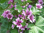 Plant Purple White Zebra Mallow Flower Seeds for Planting - in well-drained, fertile soil. Full to partial sun is ideal, depending on the plant species. Regular watering is necessary. Promotes pollinator-friendly gardening, supporting local wildlife.